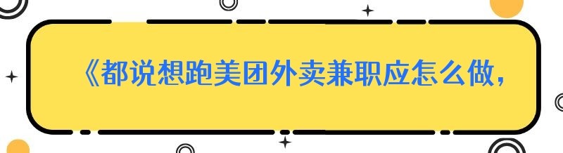 《都说想跑美团外卖兼职应怎么做,这些你都知道吗!》