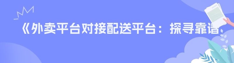 编辑 《外卖平台对接配送平台:探寻靠谱之选》