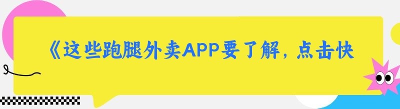 《这些跑腿外卖APP要了解,点击快速了解!》