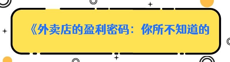 《外卖店的盈利密码:你所不知道的真相》