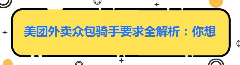 美团外卖众包骑手要求全解析:你想知道的都在这里