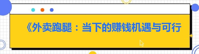 《外卖跑腿:当下的赚钱机遇与可行性超详细解析》