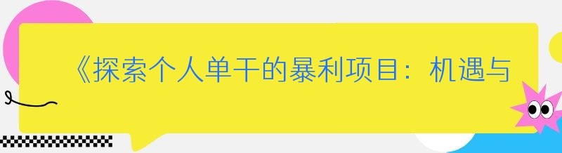 《探索个人单干的暴利项目:机遇与挑战并存》