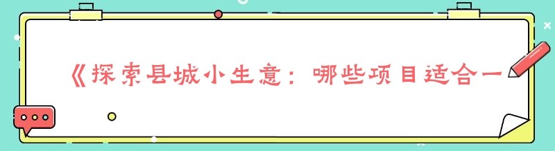 《探索县城小生意:哪些项目适合一个人轻松上手》