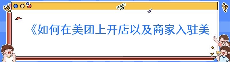 《如何在美团上开店以及商家入驻美团的费用解析》