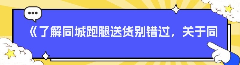《了解同城跑腿送货别错过,关于同城跑腿送货的干货在这里!》