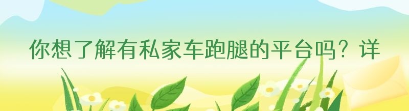 你想了解有私家车跑腿的平台吗?详情都在这!