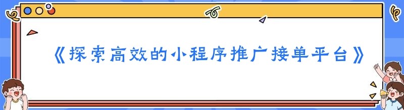 《探索高效的小程序推广接单平台》