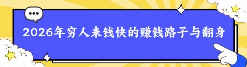 2026年穷人来钱快的赚钱路子与翻身小生意推荐