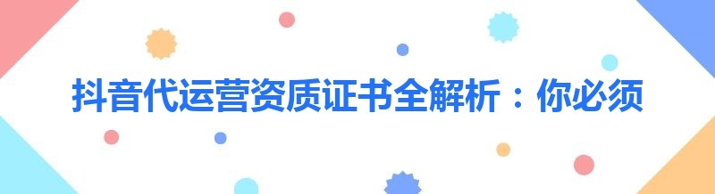 抖音代运营资质证书全解析:你必须知道的新消息