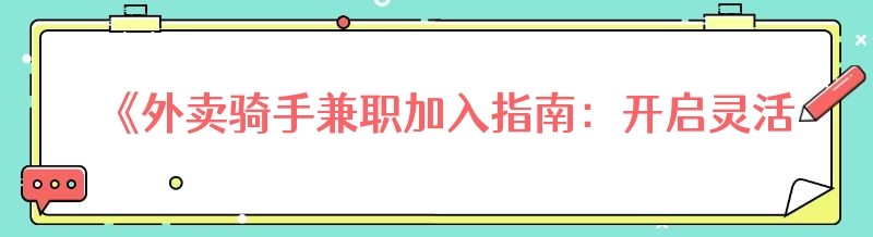 《外卖骑手兼职加入指南:开启灵活赚钱之旅》