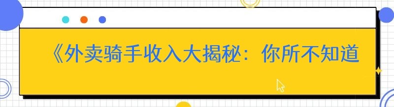 《外卖骑手收入大揭秘:你所不知道的那些事儿》