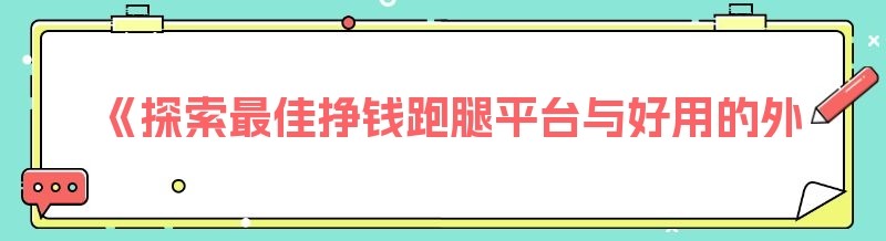 《探索最佳挣钱跑腿平台与好用的外卖跑腿系统》