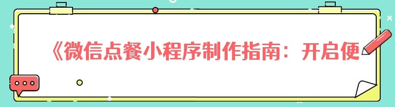 《微信点餐小程序制作指南:开启便捷餐饮新时代》