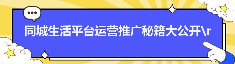 同城生活平台运营推广秘籍大公开