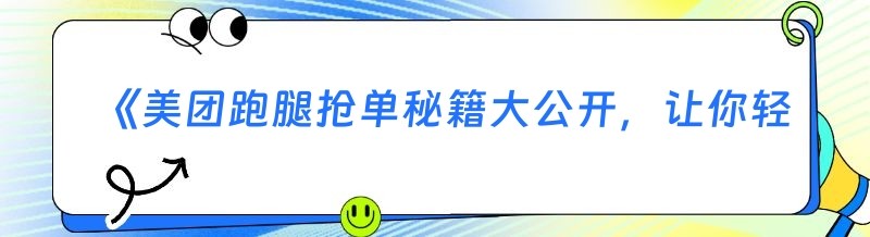 《美团跑腿抢单秘籍大公开,让你轻松接单接到手软!》