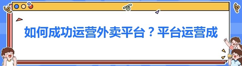 如何成功运营外卖平台?平台运营成功秘诀大揭秘