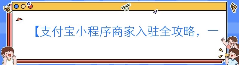 【支付宝小程序商家入驻全攻略,一文读懂】