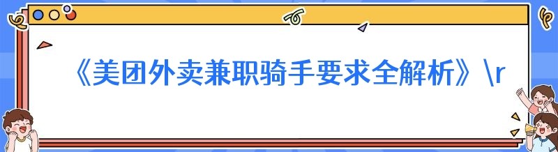 《美团外卖兼职骑手要求全解析》