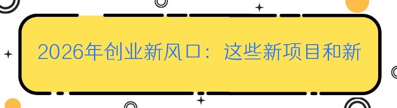 2026年创业新风口:这些新项目和新商机你抓住了吗?