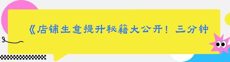 《店铺生意提升秘籍大公开!三分钟让你豁然开朗》