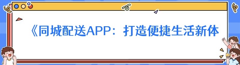 《同城配送APP:打造便捷生活新体验》
