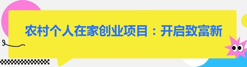 农村个人在家创业项目:开启致富新征程