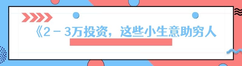 《2 - 3万投资,这些小生意助穷人开启创业路》