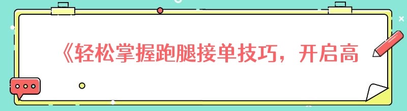 《轻松掌握跑腿接单技巧,开启高效服务之旅》