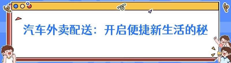 汽车外卖配送:开启便捷新生活的秘密武器