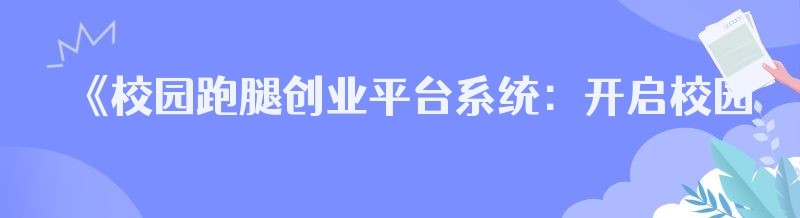 编辑 《校园跑腿创业平台系统:开启校园创业新征程》