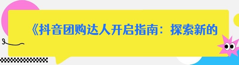 《抖音团购达人开启指南:探索新的赚钱机遇》