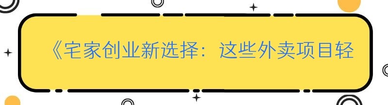 在当今社会,越来越多的人渴望在家中开展自己的事业,既能兼顾家庭,又能实现经济独立。而外卖行业的蓬勃发展,为大家提供了众多适合在家做的优质项目。以下就为您详细介绍一些备受青睐的宅家外卖项目。