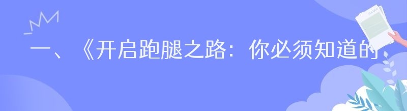 一、《开启跑腿之路:你必须知道的那些事儿》