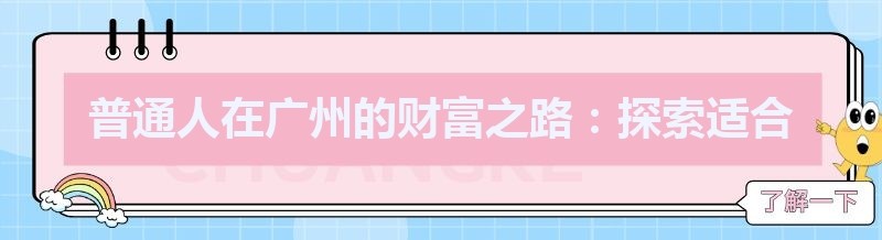 普通人在广州的财富之路:探索适合的赚钱途径