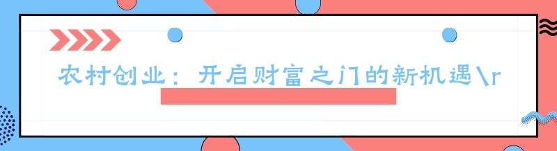 农村创业:开启财富之门的新机遇