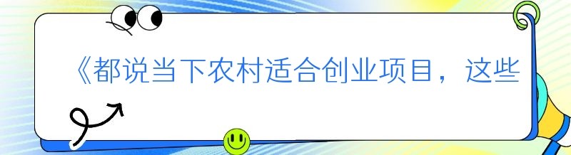 《都说当下农村适合创业项目,这些你都知道吗!》