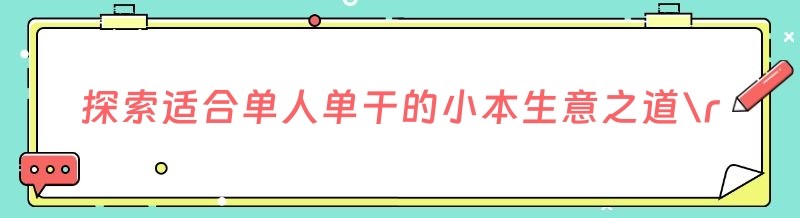 编辑 探索适合单人单干的小本生意之道