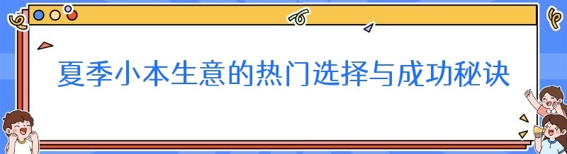 夏天,这个充满活力与热情的季节,总是为创业者带来了许多独特的商机。对于那些怀揣创业梦想但资金有限的人来说,小本生意无疑是一个不错的选择。那么,夏天到底适合做哪些小本生意呢?让我们一起来探索一下吧!