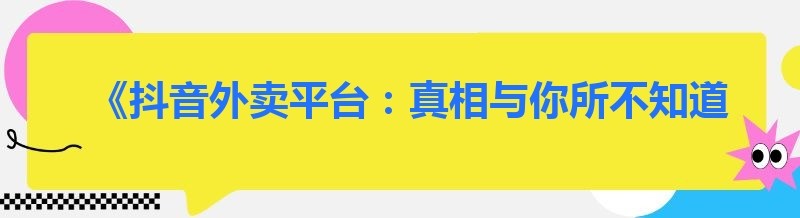 《抖音外卖平台:真相与你所不知道的那些事》