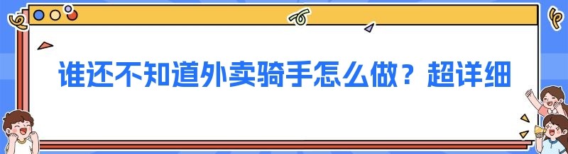 谁还不知道外卖骑手怎么做?超详细介绍!