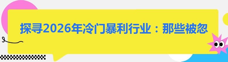 探寻2026年冷门暴利行业:那些被忽视的财富密码