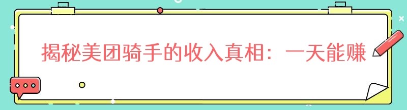 揭秘美团骑手的收入真相:一天能赚多少?月入几何?