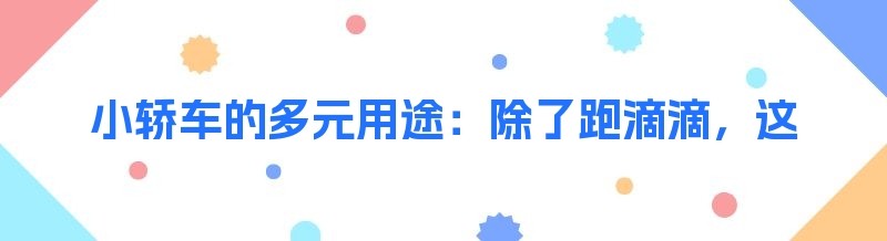 小轿车的多元用途:除了跑滴滴,这些选择让你的车物尽其用