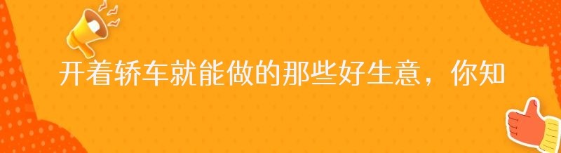 以上就是一些只需一辆轿车就能做的生意,当然,要想在这些生意中取得成功,还需要具备一定的商业头脑、服务意识和营销能力。同时,要遵守相关的法律法规,确保自己的经营活动合法合规。如果你有一辆轿车,不妨考虑一下这些生意机会,也许能为你带来意想不到的收益。