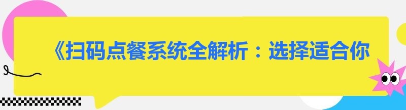 《扫码点餐系统全解析:选择适合你的那一款》