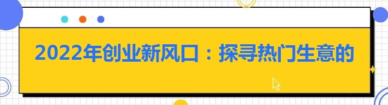 编辑 2022年创业新风口:探寻热门生意的宝藏之路