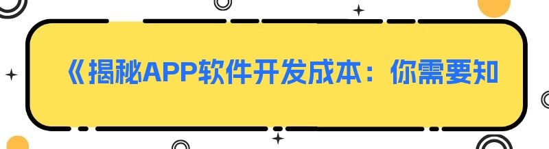 《揭秘APP软件开发成本:你需要知道的那些事儿》