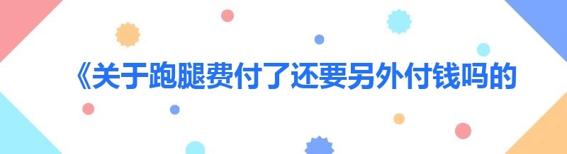 《关于跑腿费付了还要另外付钱吗的新消息》