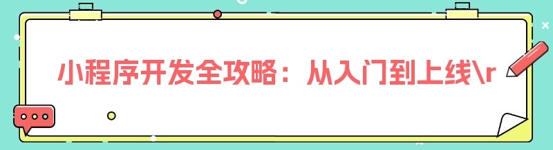 小程序开发全攻略:从入门到上线